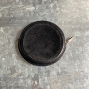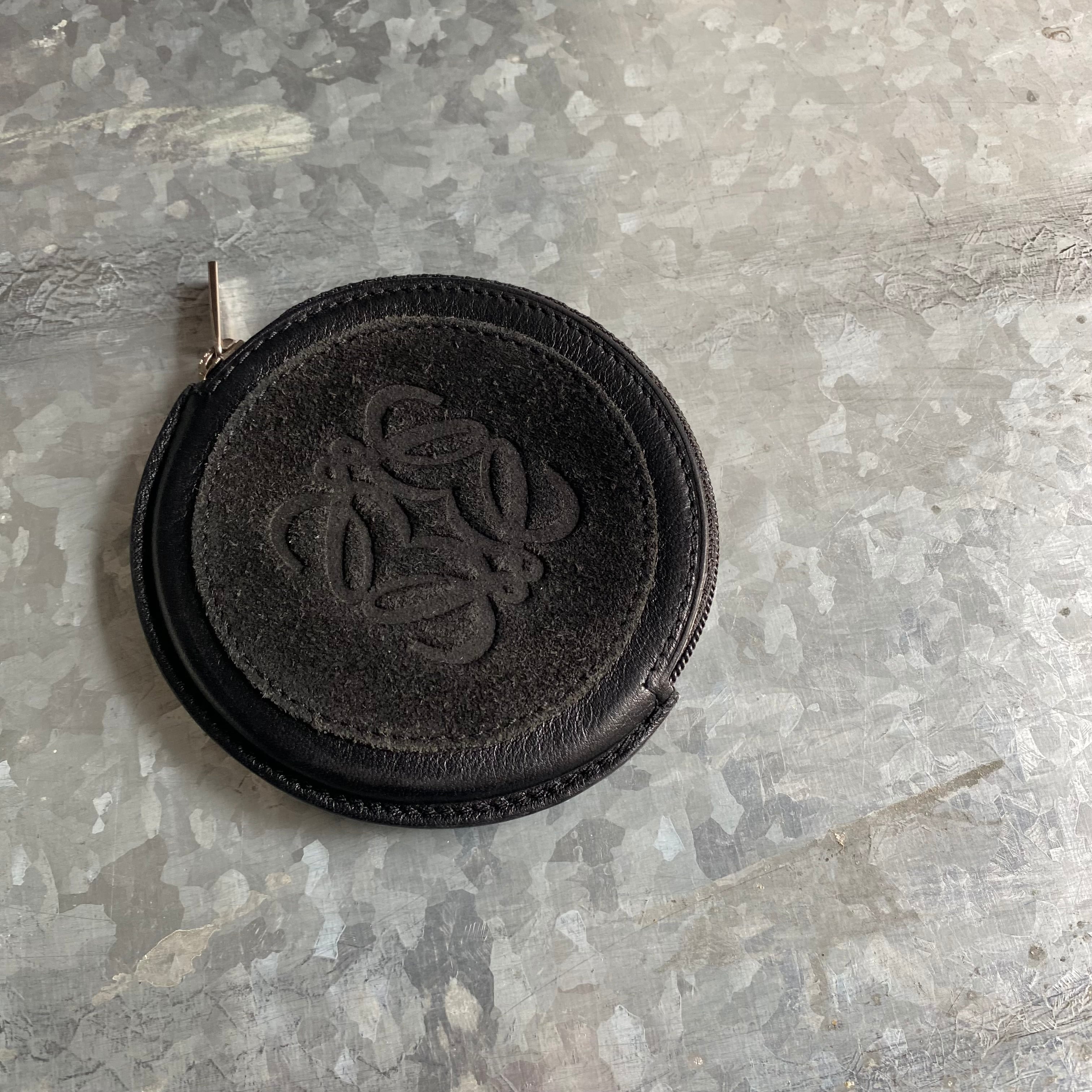 スムースレザーとスエードのコンビレザーを使ったコインケース。まん丸の形と大きなアナグラムが特徴的です。