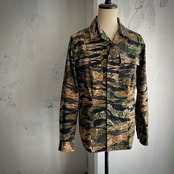 地厚なリップストップ生地を使っていて軽いアウターとして使えるシャツ。よく見ると、2種類の柄をブロックプリントしています。また、前後センターに2本づつダーツを入れて立体感を演出しています。