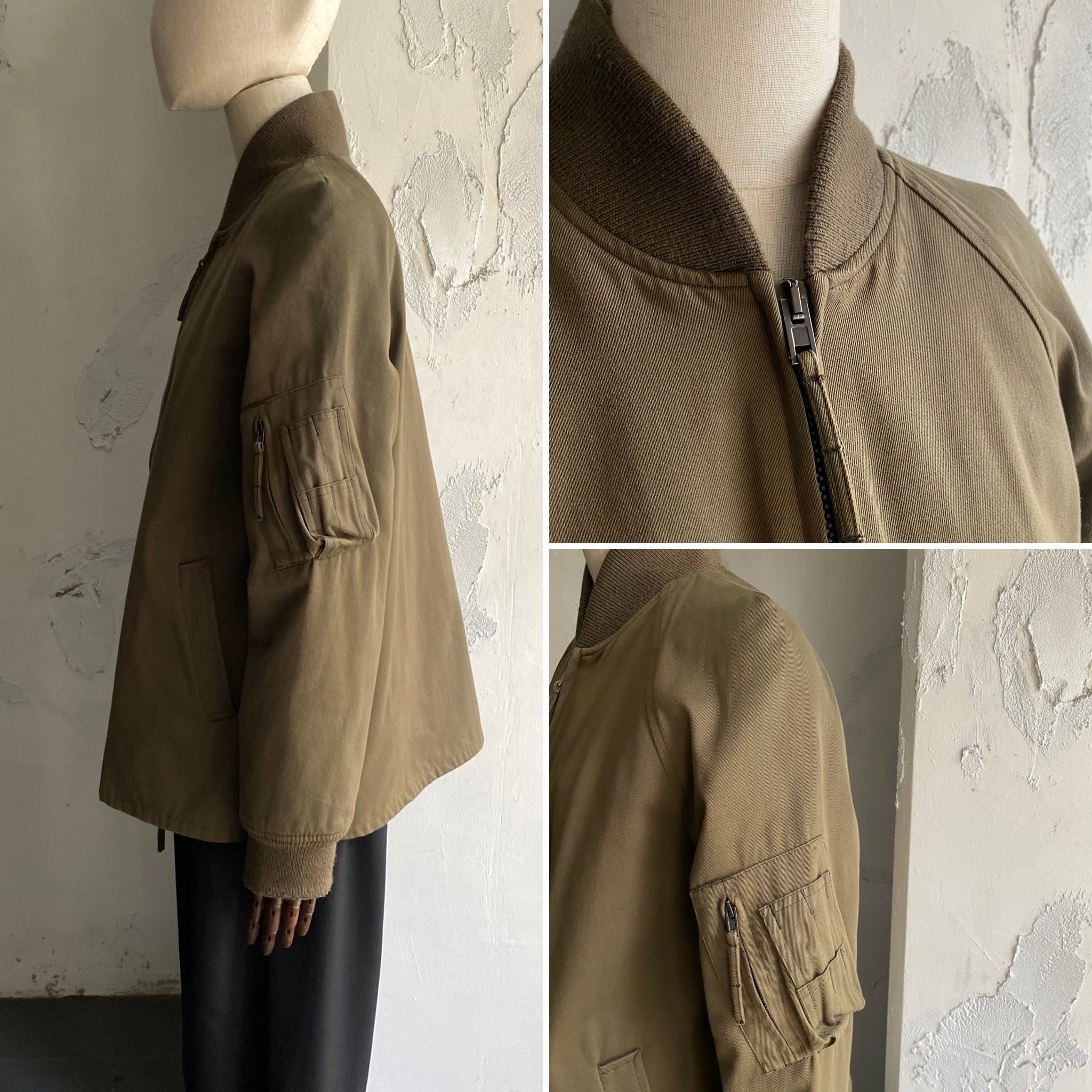 MA-1をベースに裾のリブをなくし丈を長くしたデザイン。ラグランスリーブながら肩まわりがスッキリしたパターンでシャープなフォルムです。