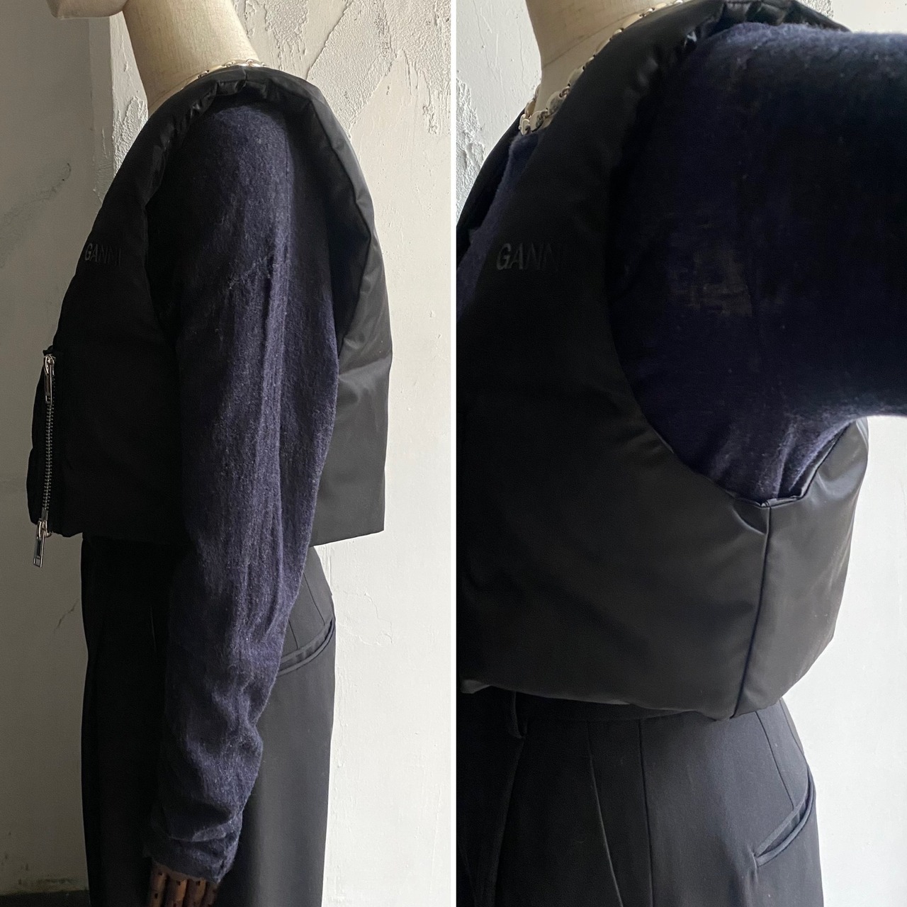 ライフベストの様なユニークなデザインの中綿ベスト。スタイリングで個性がプラスされるキュートなアイテムです。