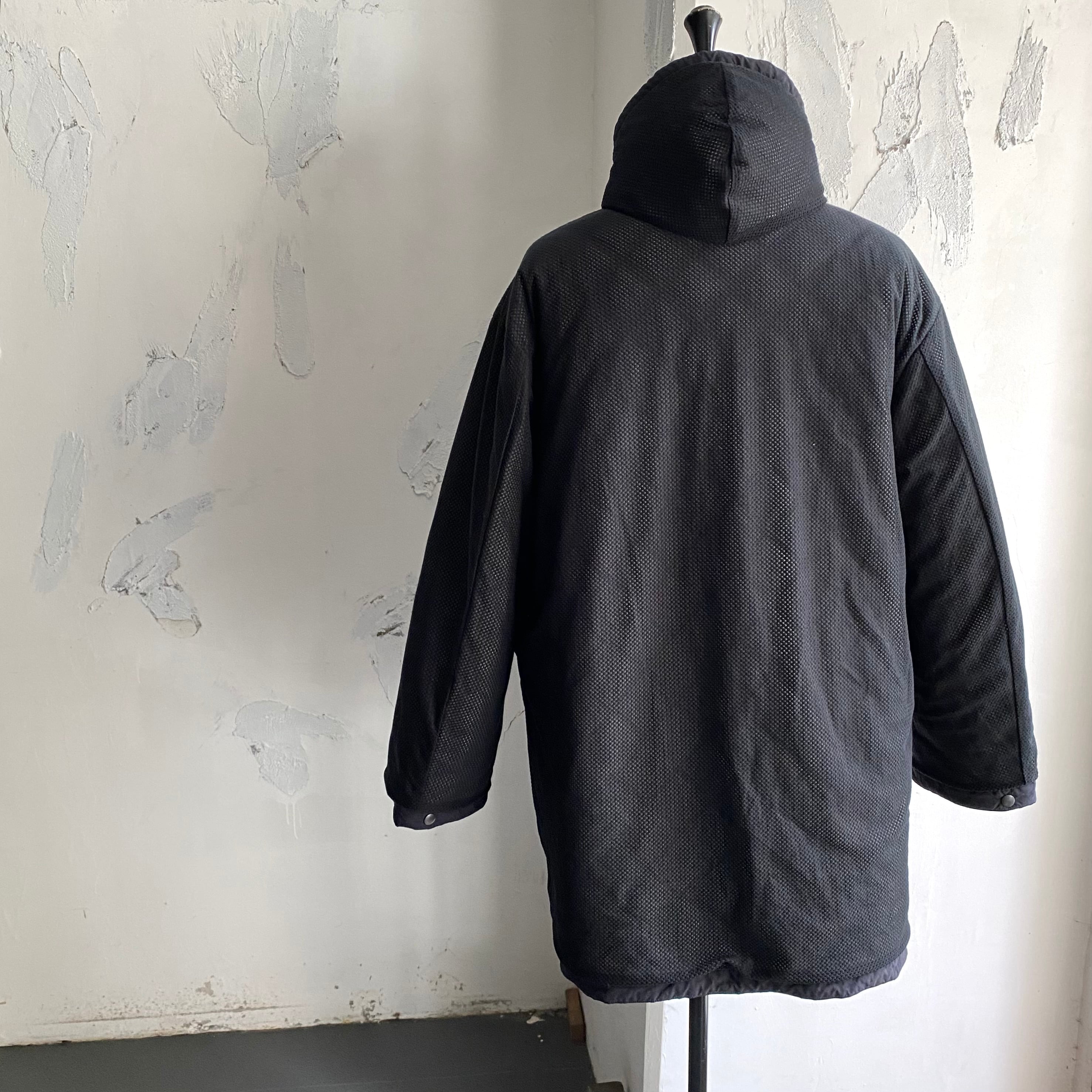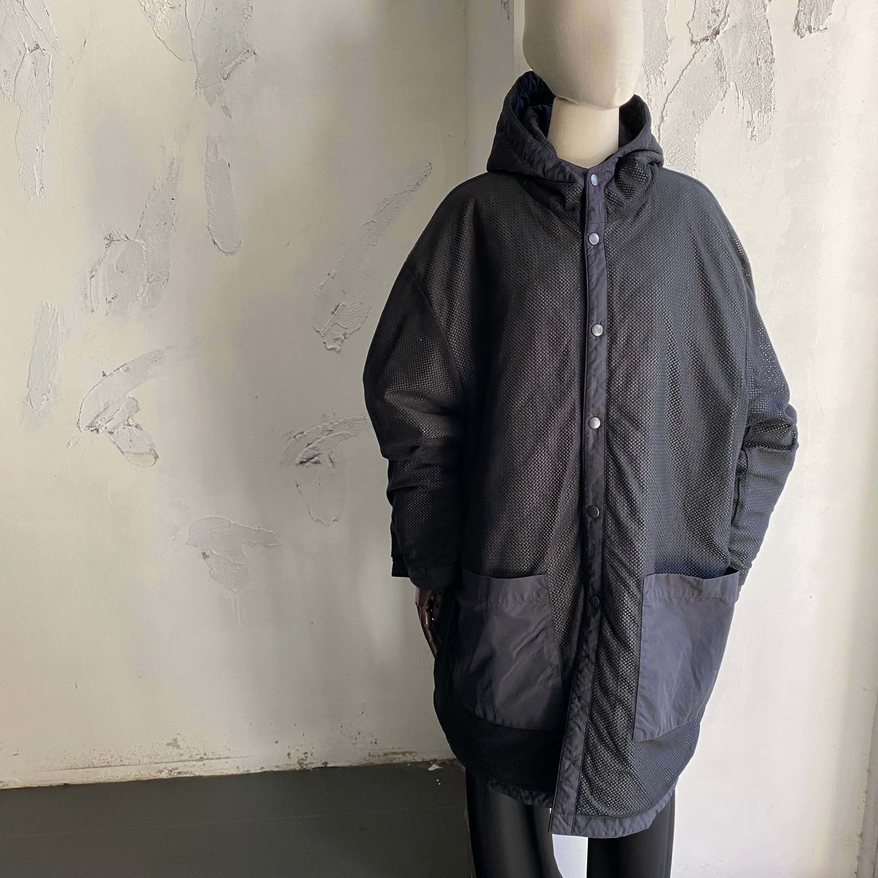 表はシャリっとした生地のキルティングで、裏はメッシュ生地のリバーシブル仕様。アームの広いボックスフォルムがヨークらしく抜けた雰囲気です。