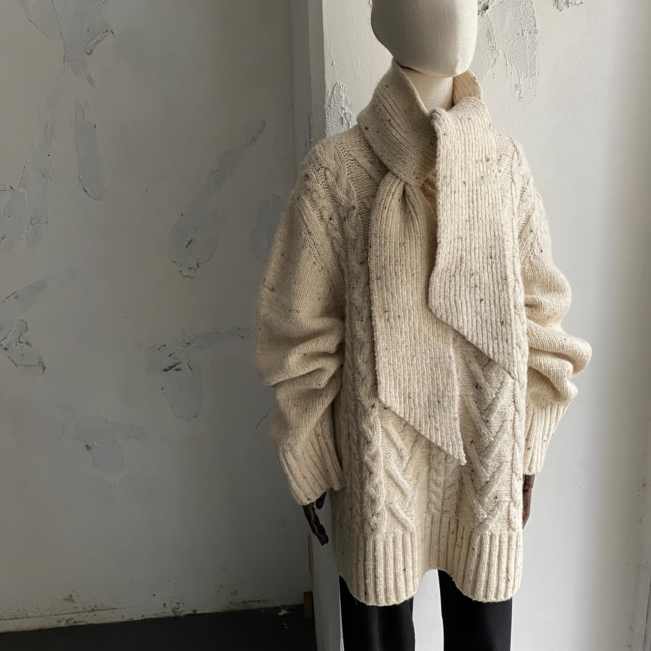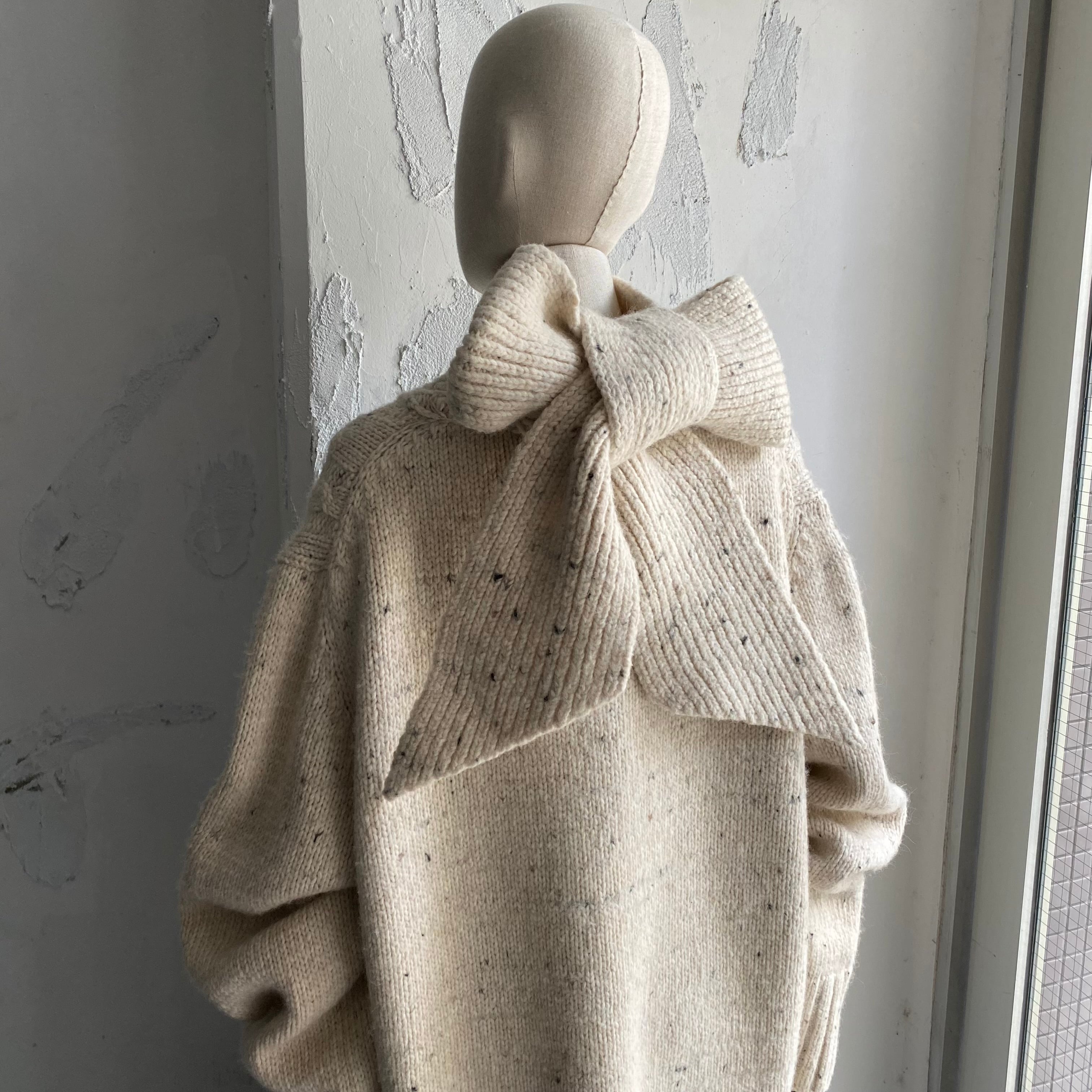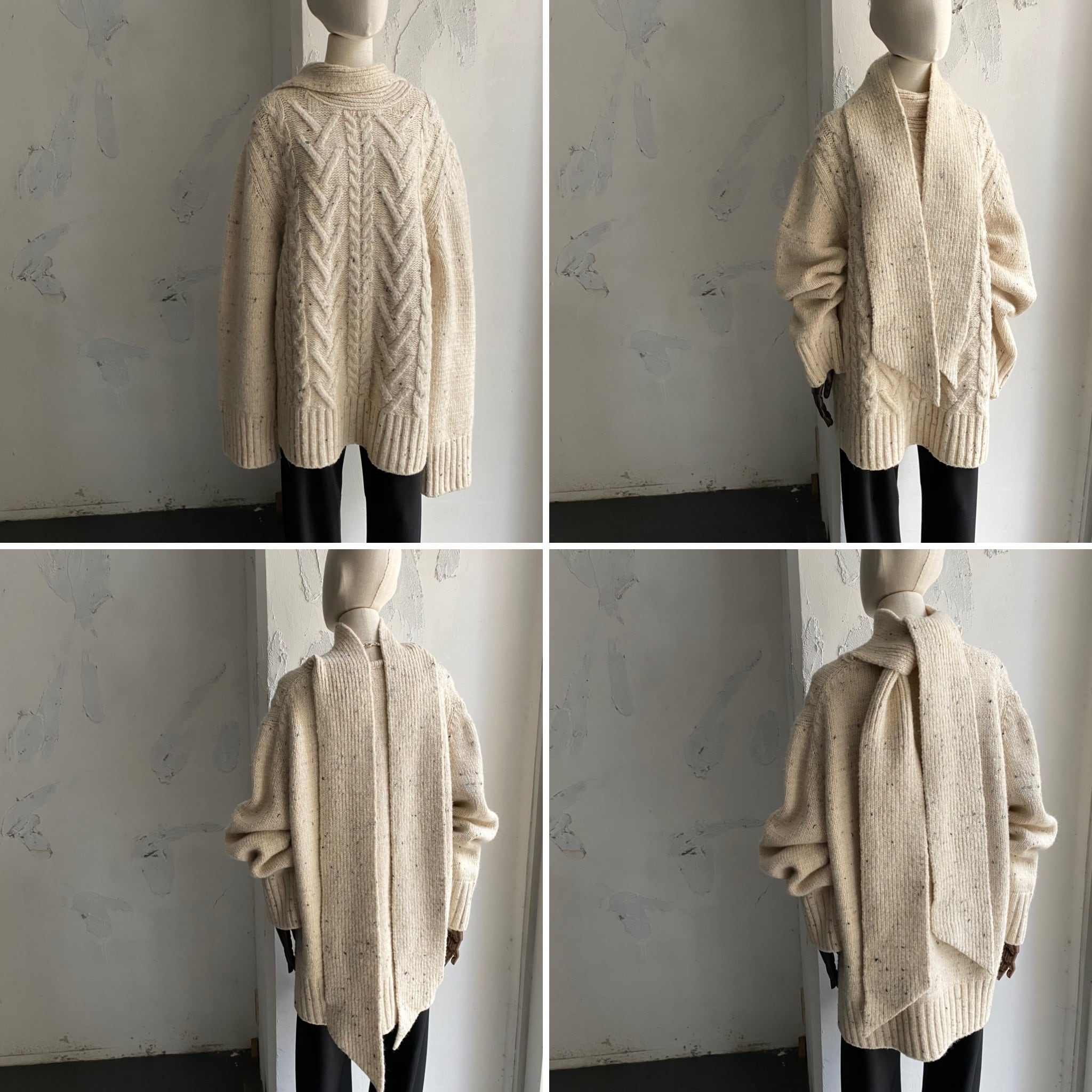 ストールになった襟と極太の袖が特徴的で、ストールのアレンジは色々可能でスタイリングが楽しいです。