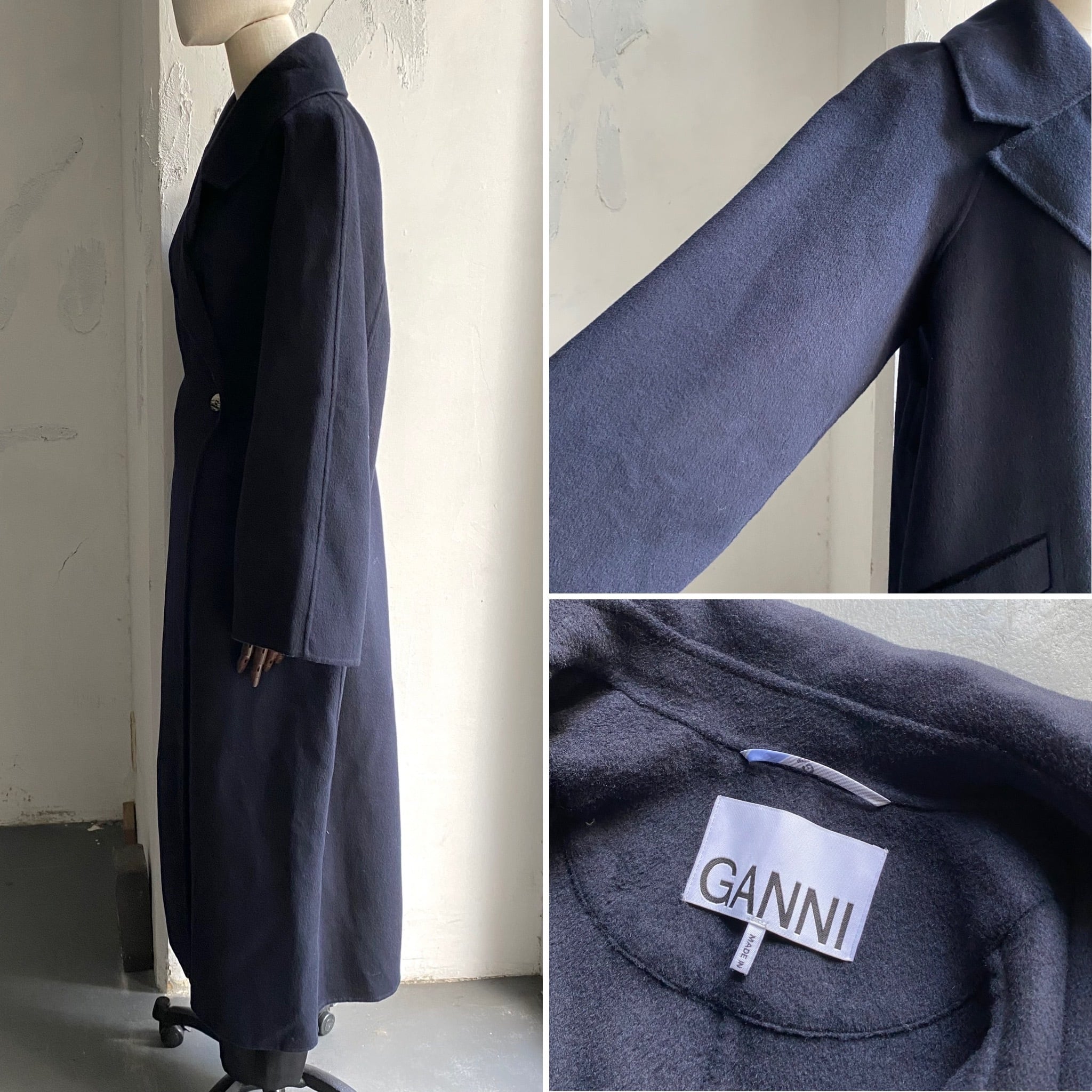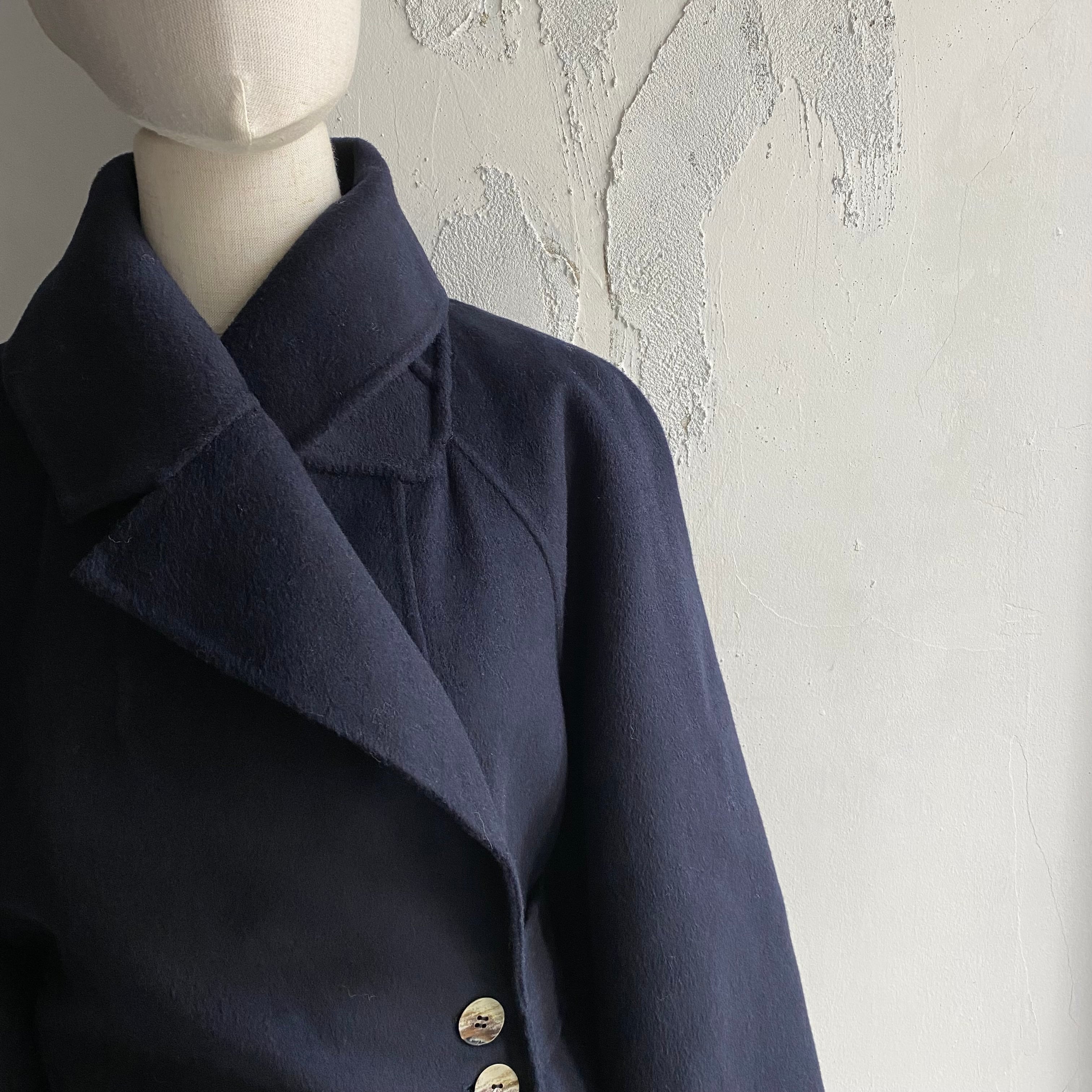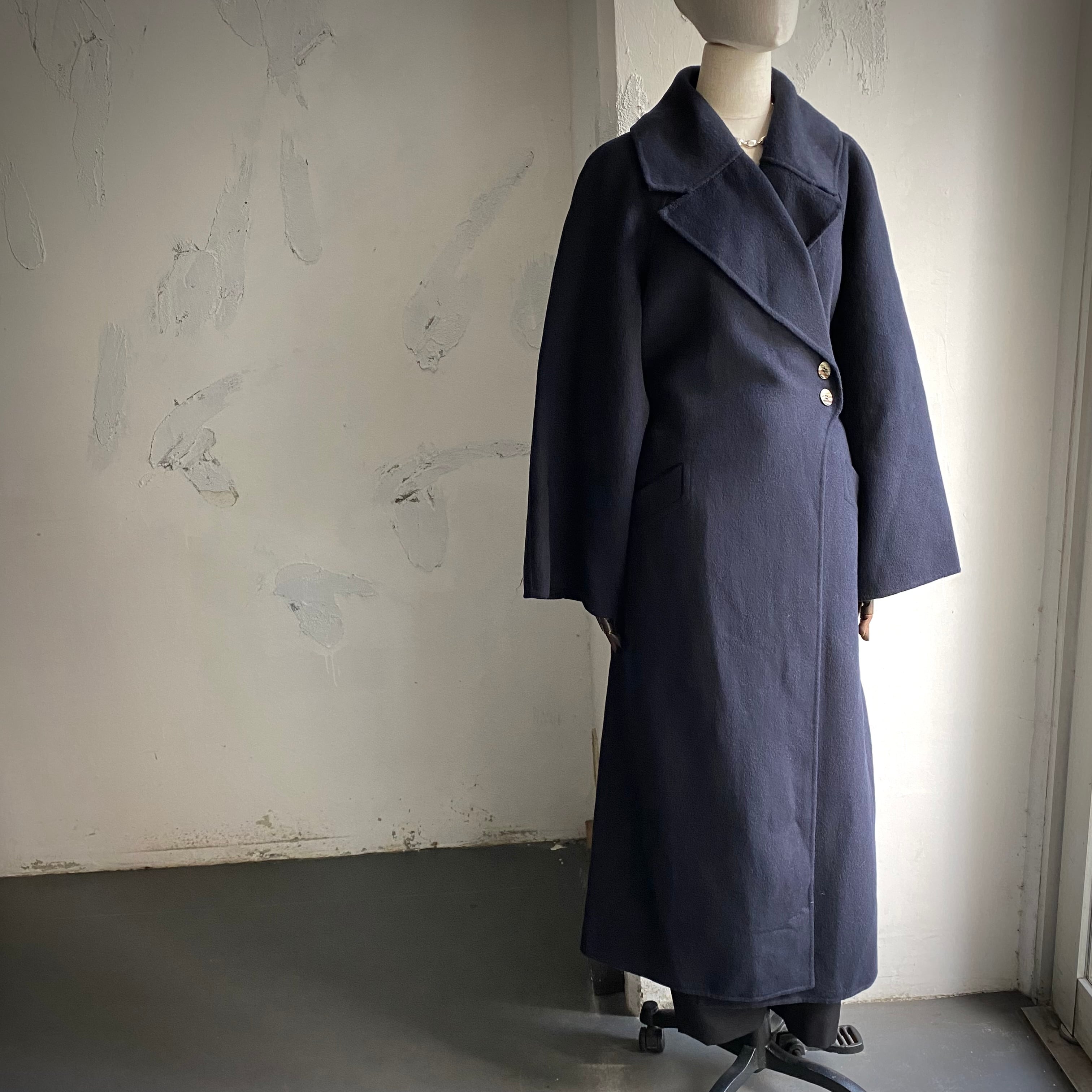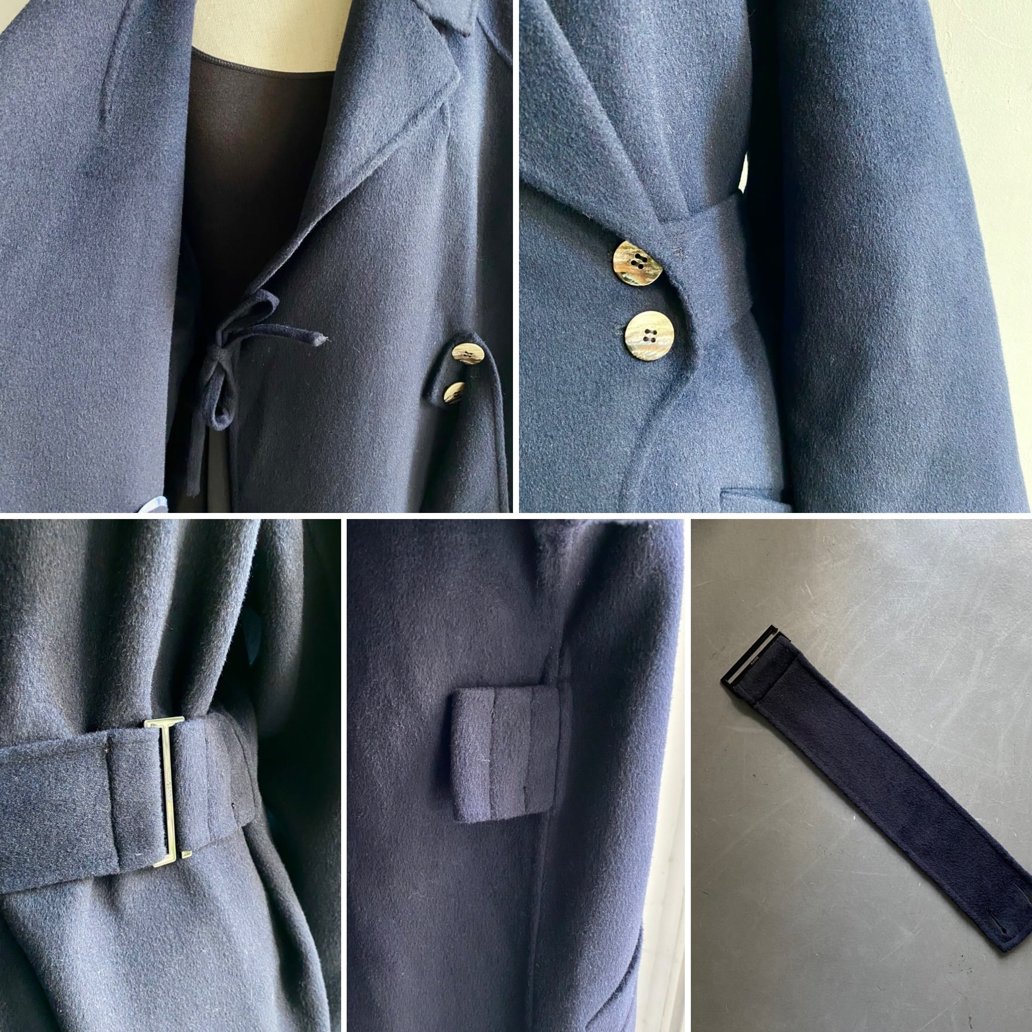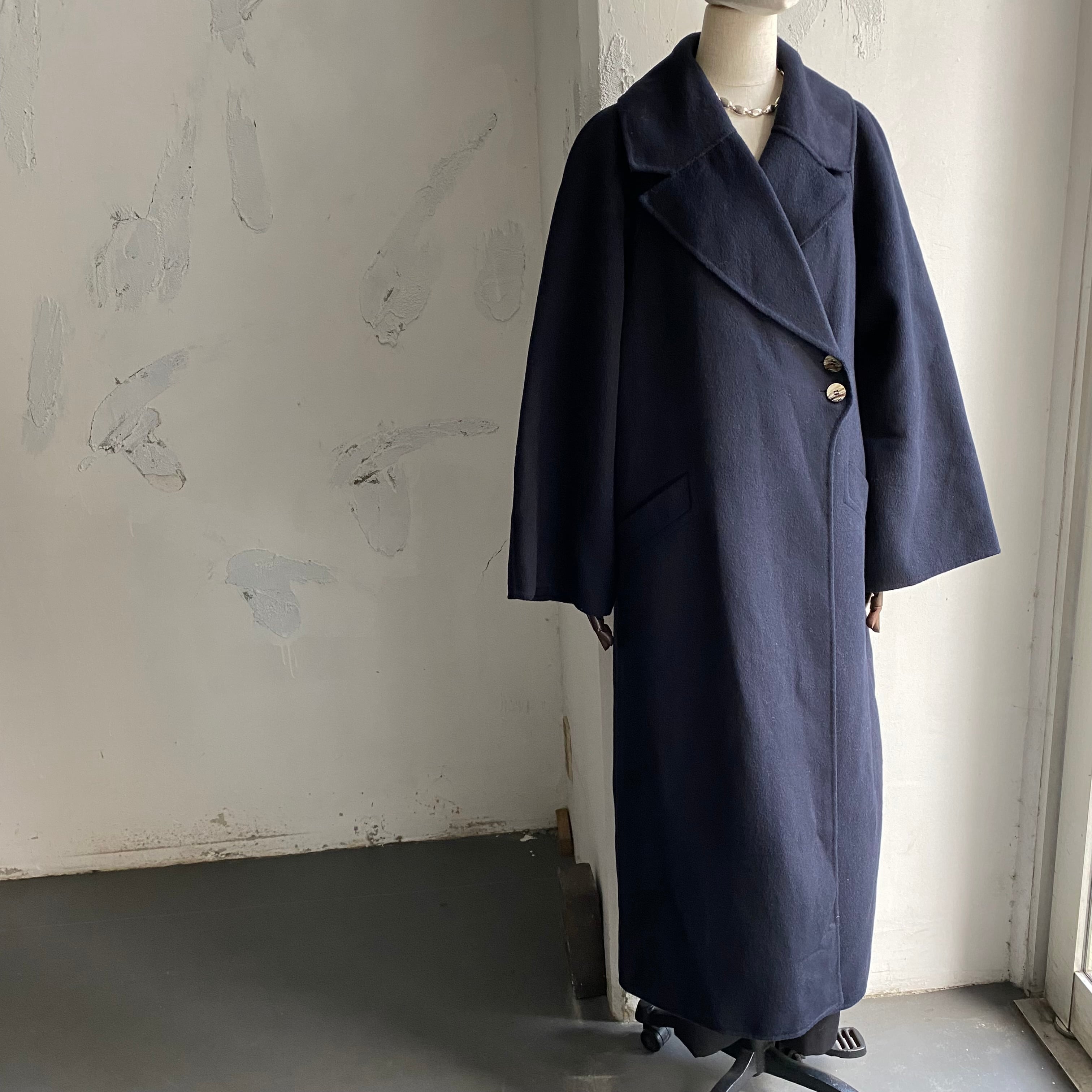 とても柔らかいダブルフェイスウールで、たっぷりとした肩・袖が綺麗なドレイプを作ります。着丈の長さがエレガントさを演出していて、モダンなデザイン性とクラシック感が共存する素敵なコートです。