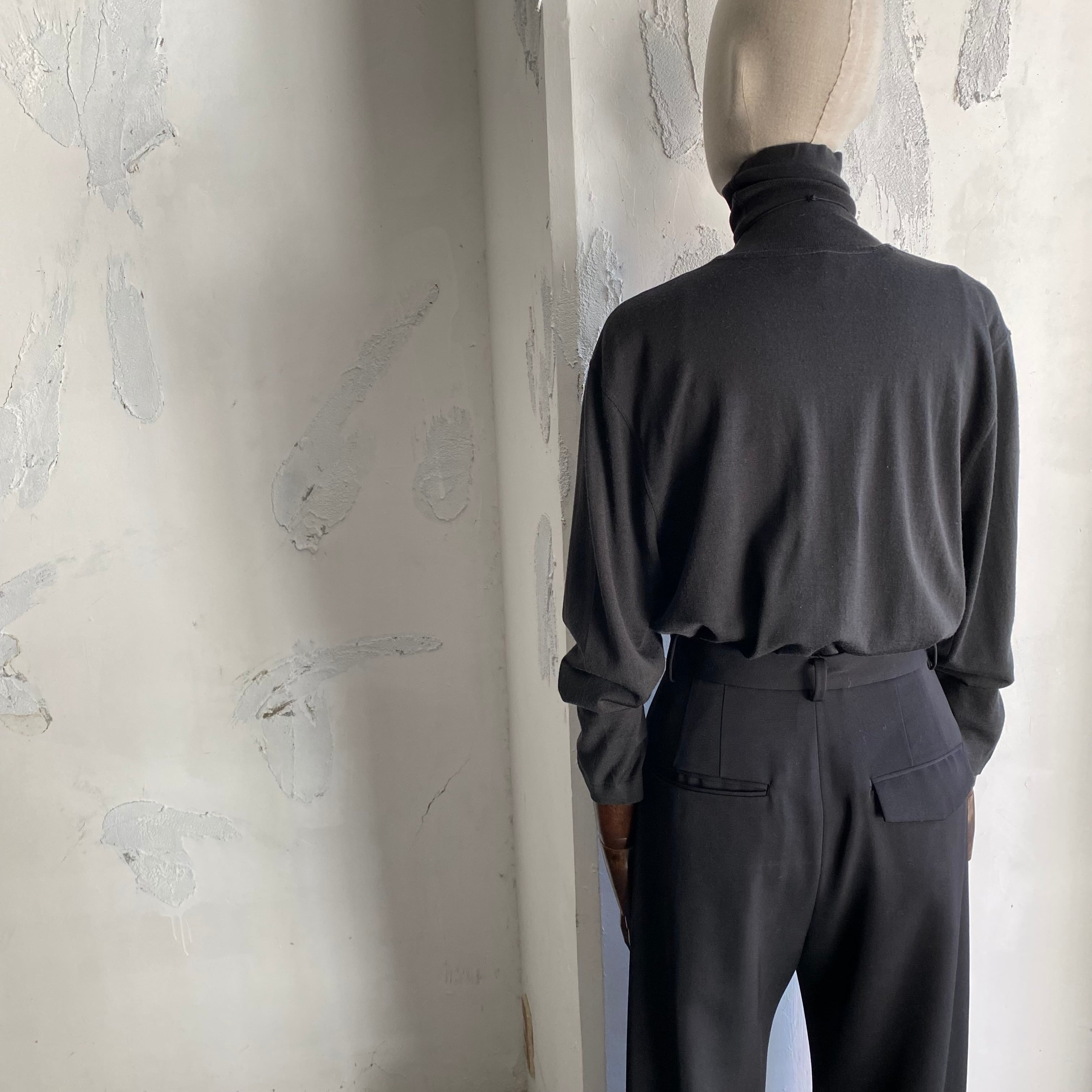 女性が着た場合ややビッグフォルムなので、タックインして大きくブラウジングしると優美なスタイリングになります。