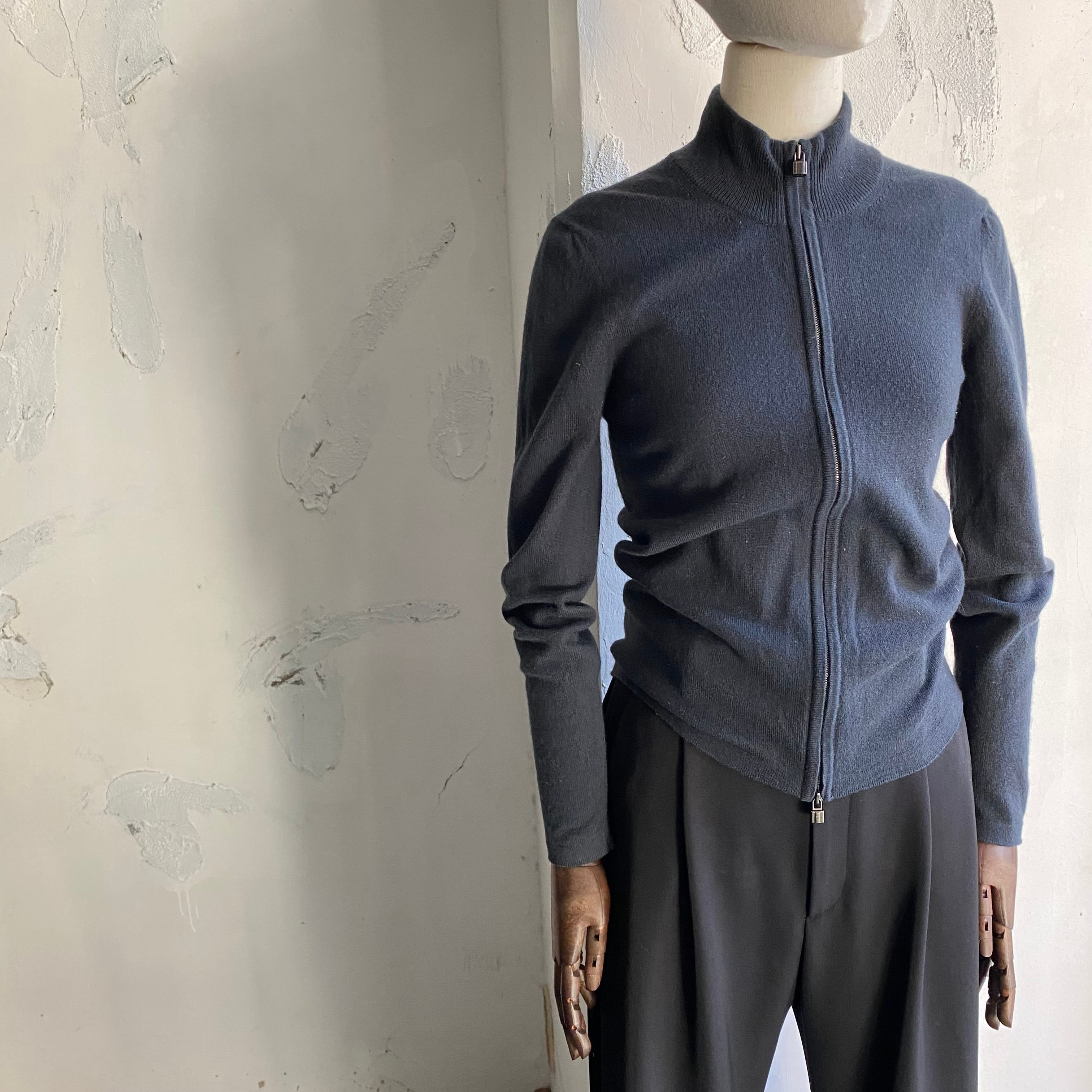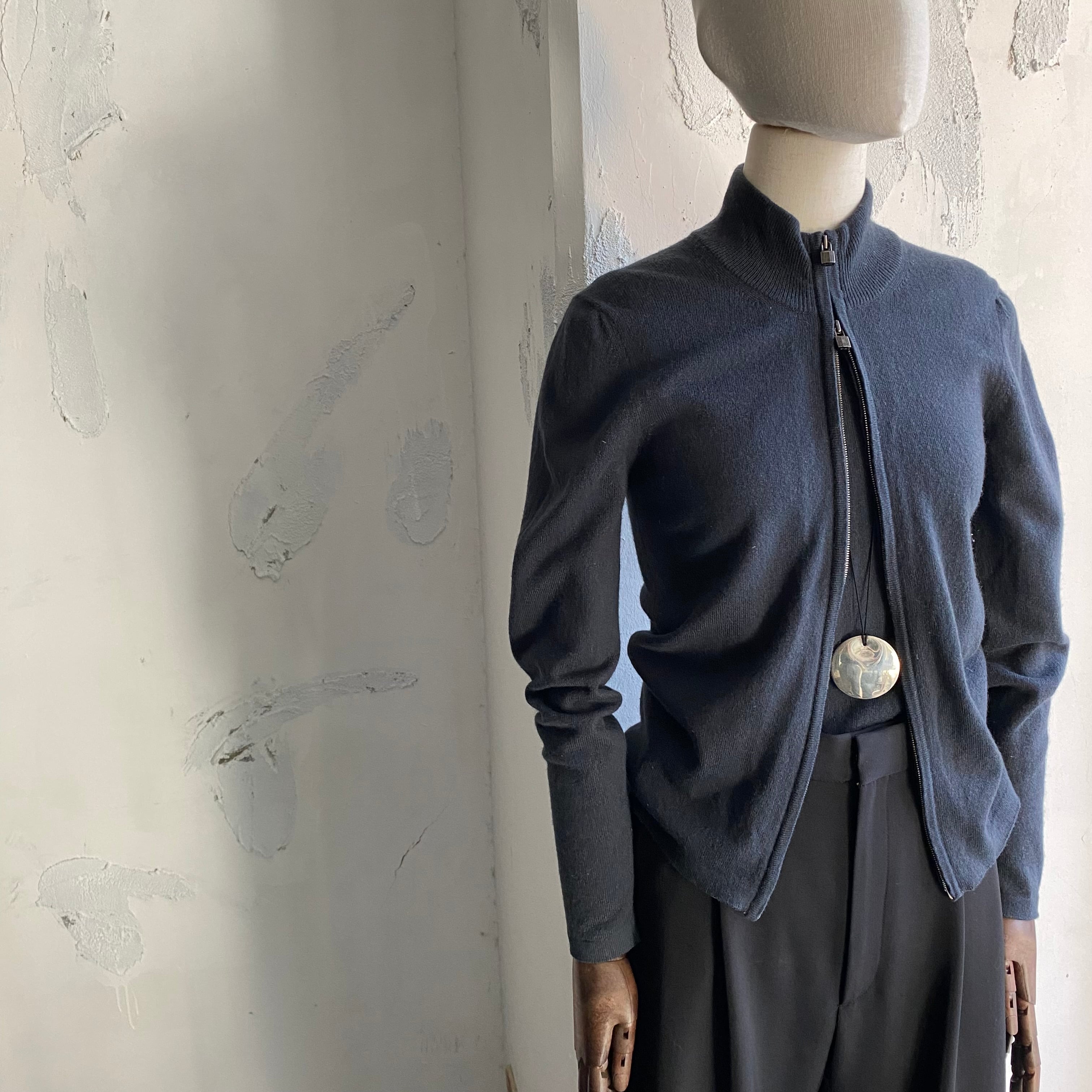 ジップアップのスタンドカラーがスポーティなミニマムアンサンブル。ジップヘッドのカデナがさりげなくアクセント。
