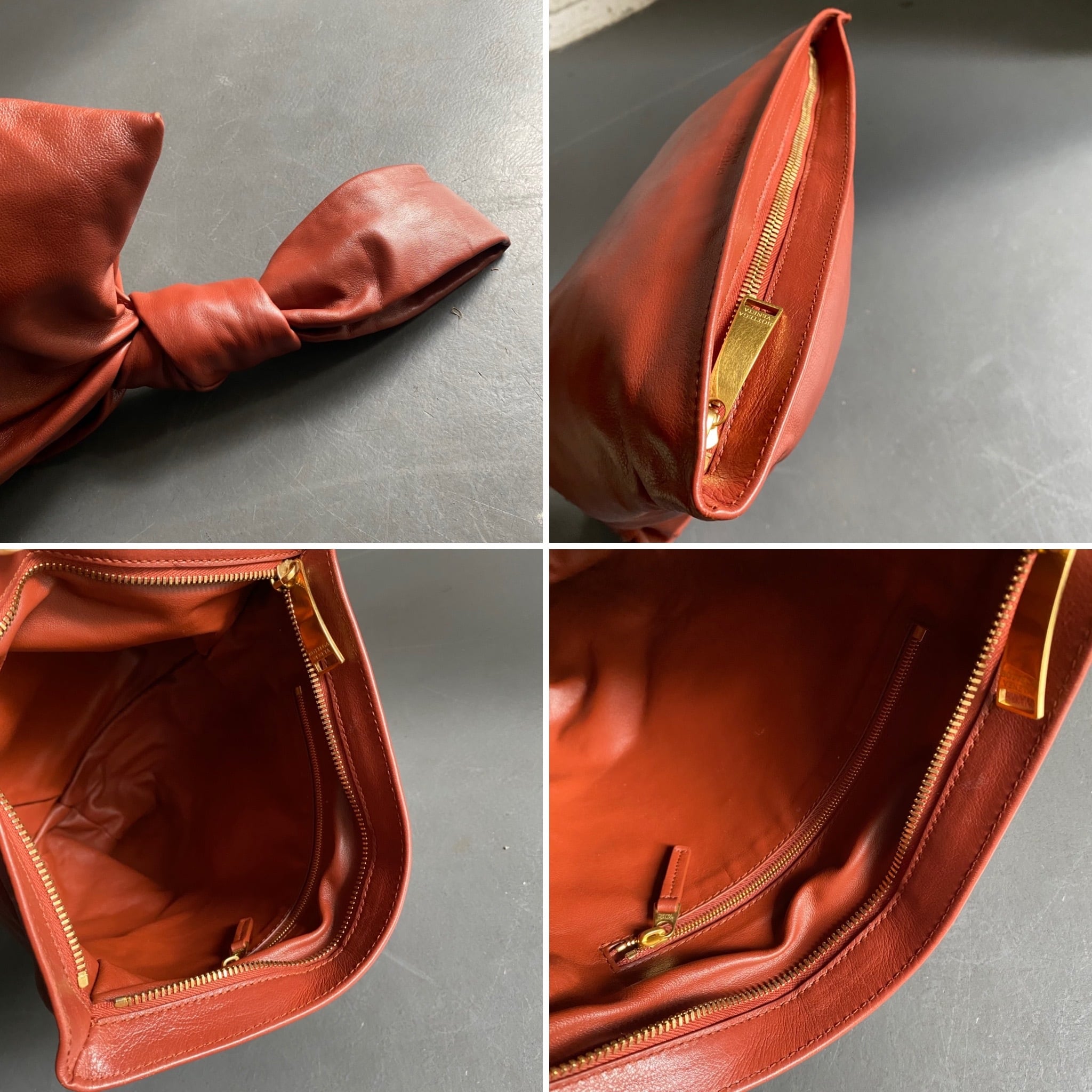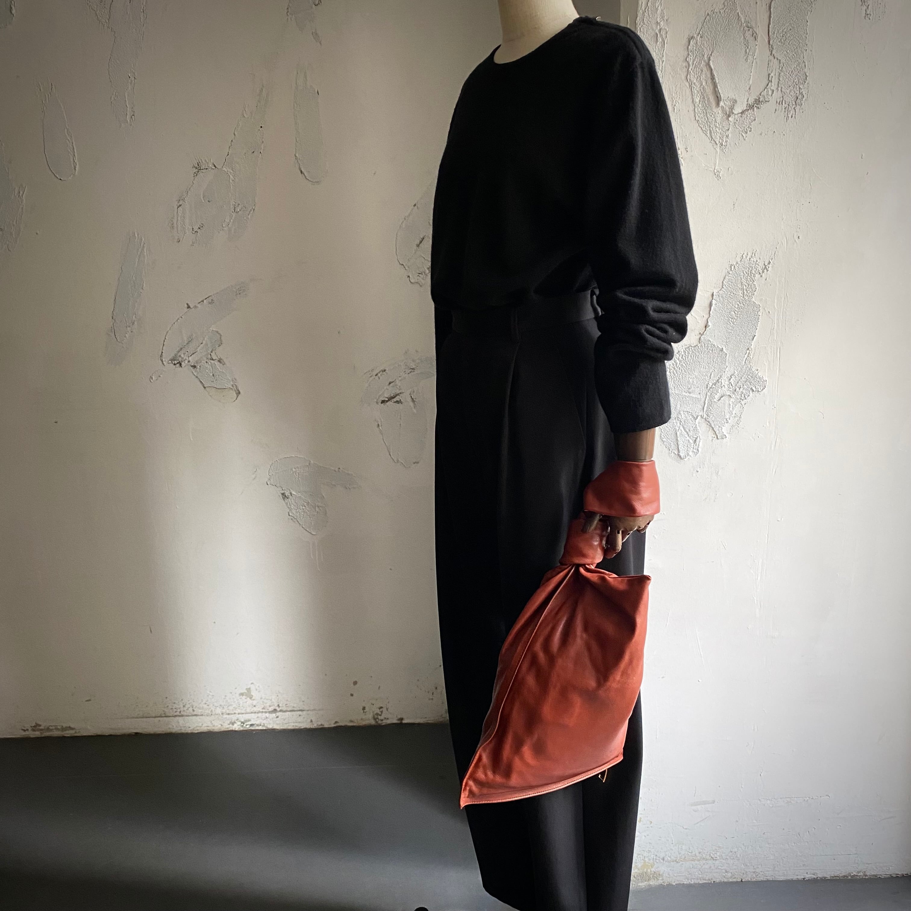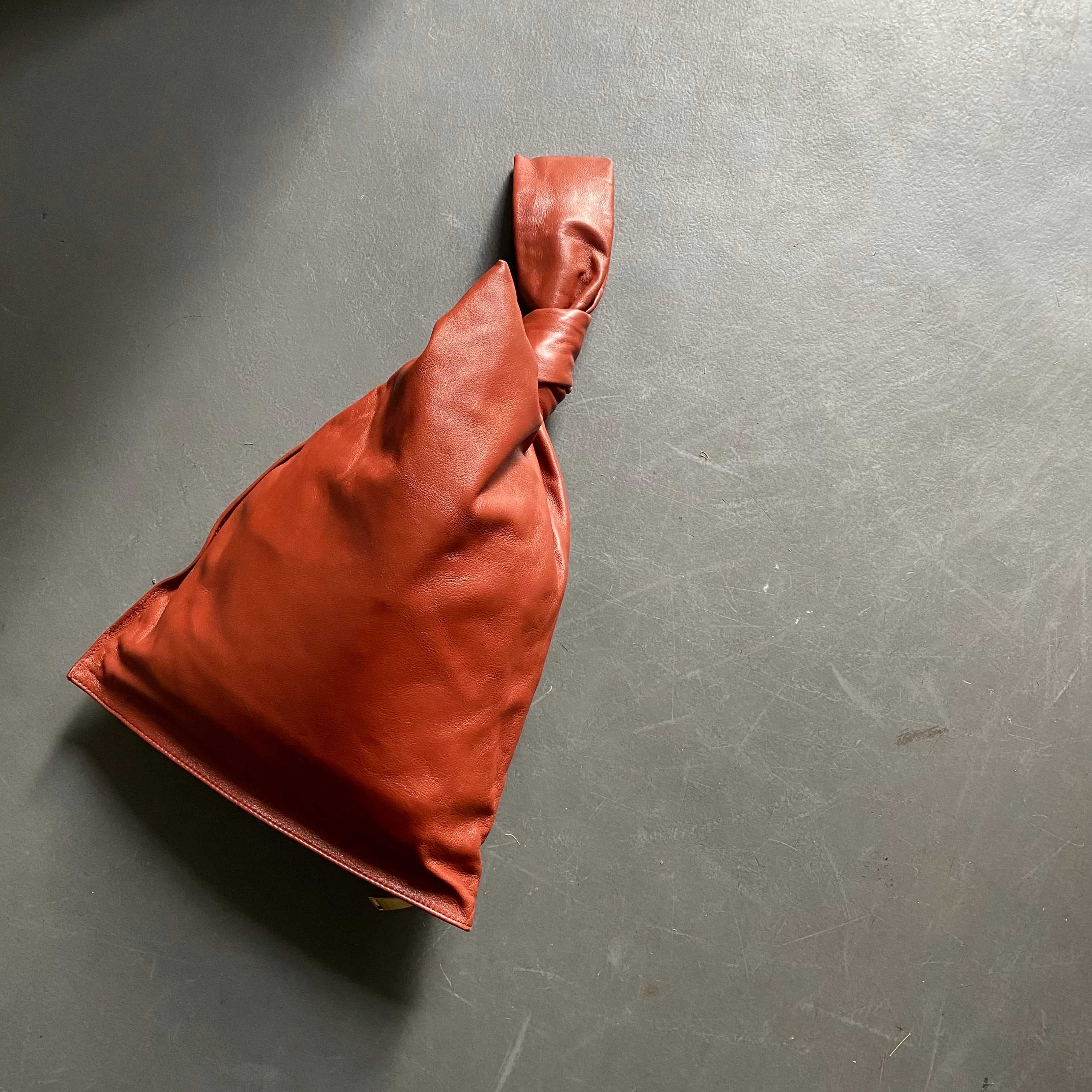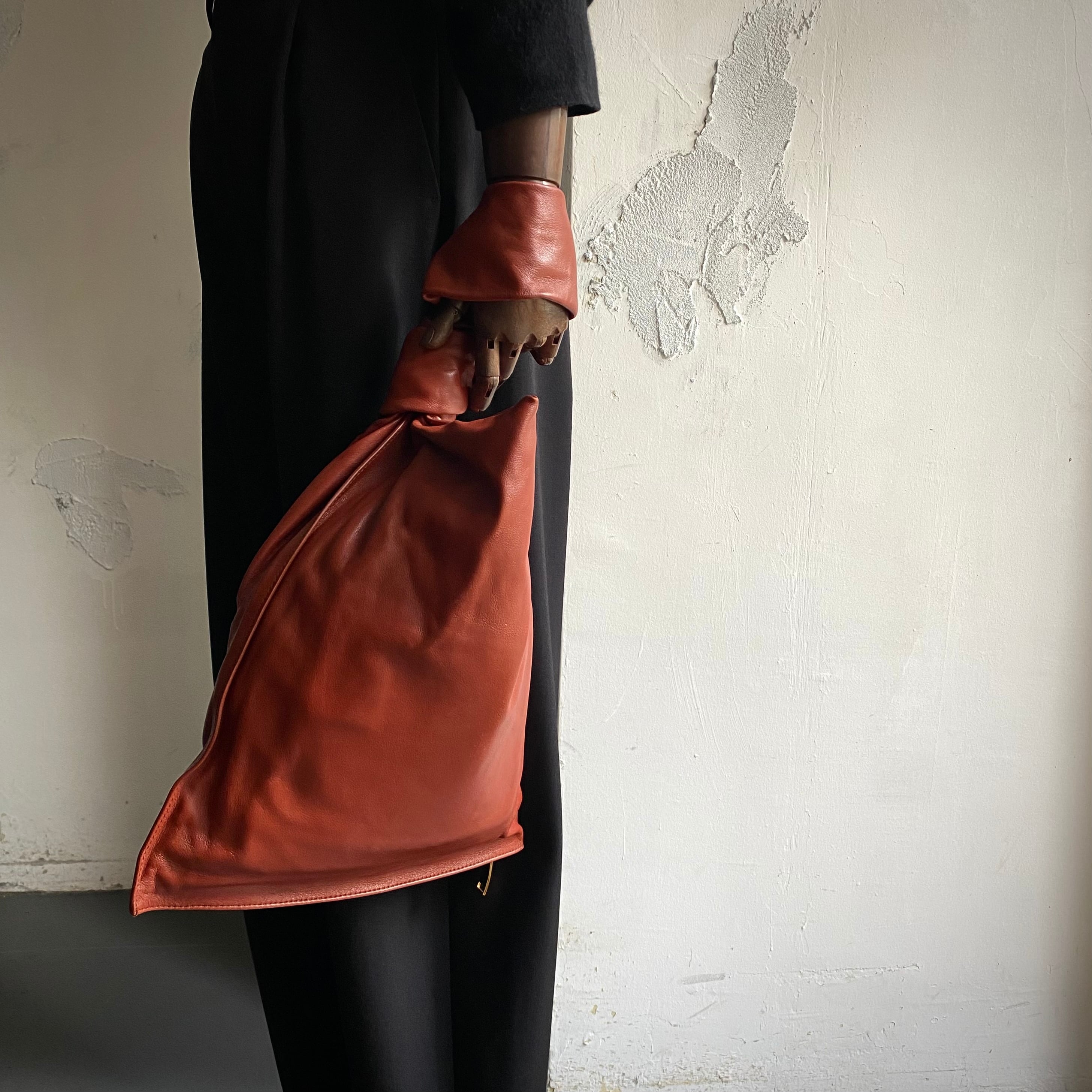 2サイズあるモデルで、こちらはラージサイズ。デザイン性あるヴィジュアルとは裏腹に容量もあり実用性もあります。渋いレンガブラウンがスタイリングで馴染みが良いです。