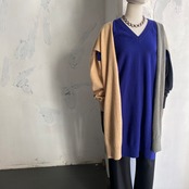 4色のニットをパーツで切り替え使いしたワンピース。