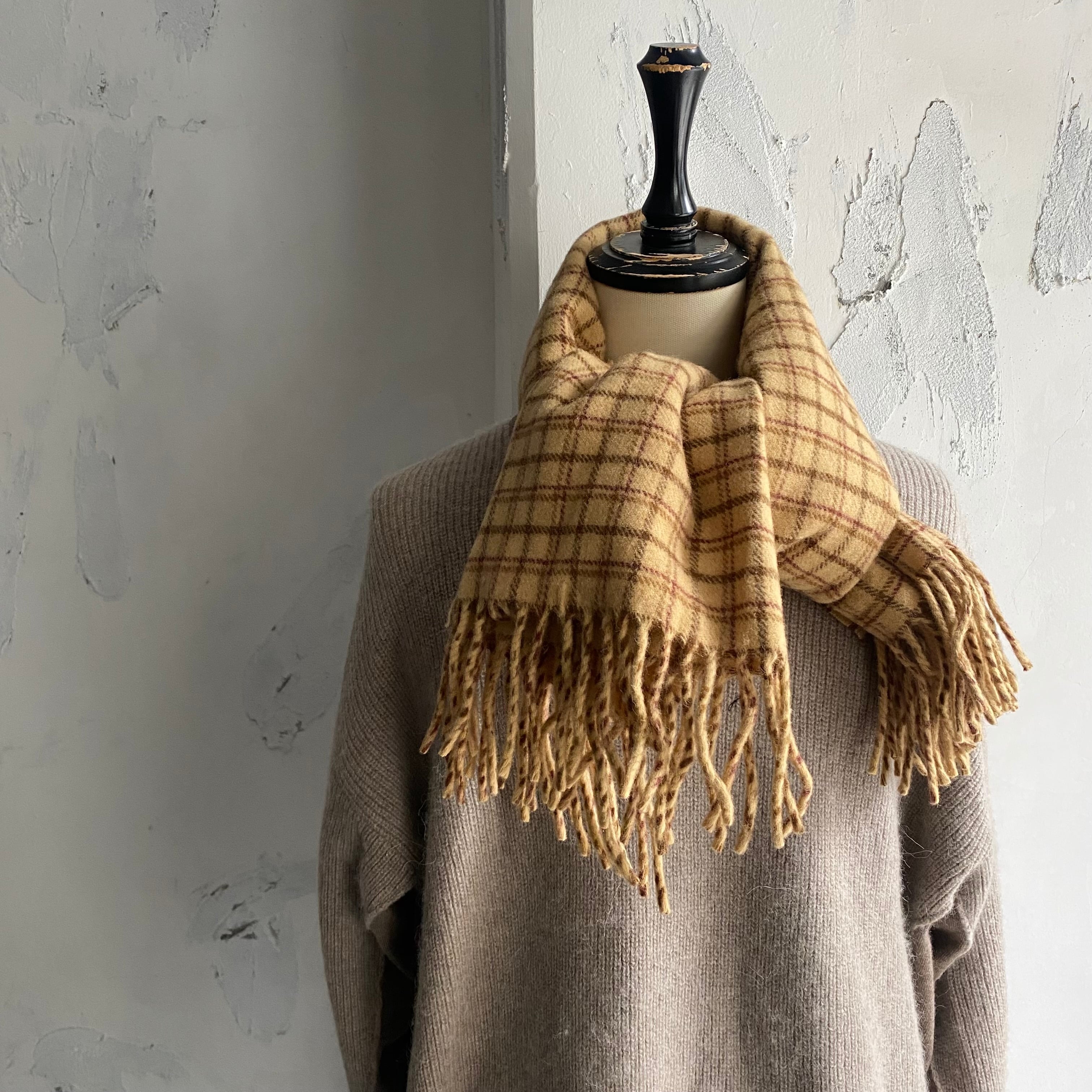 カントリースタイルの温かみあるベージュチェックのブランケット。