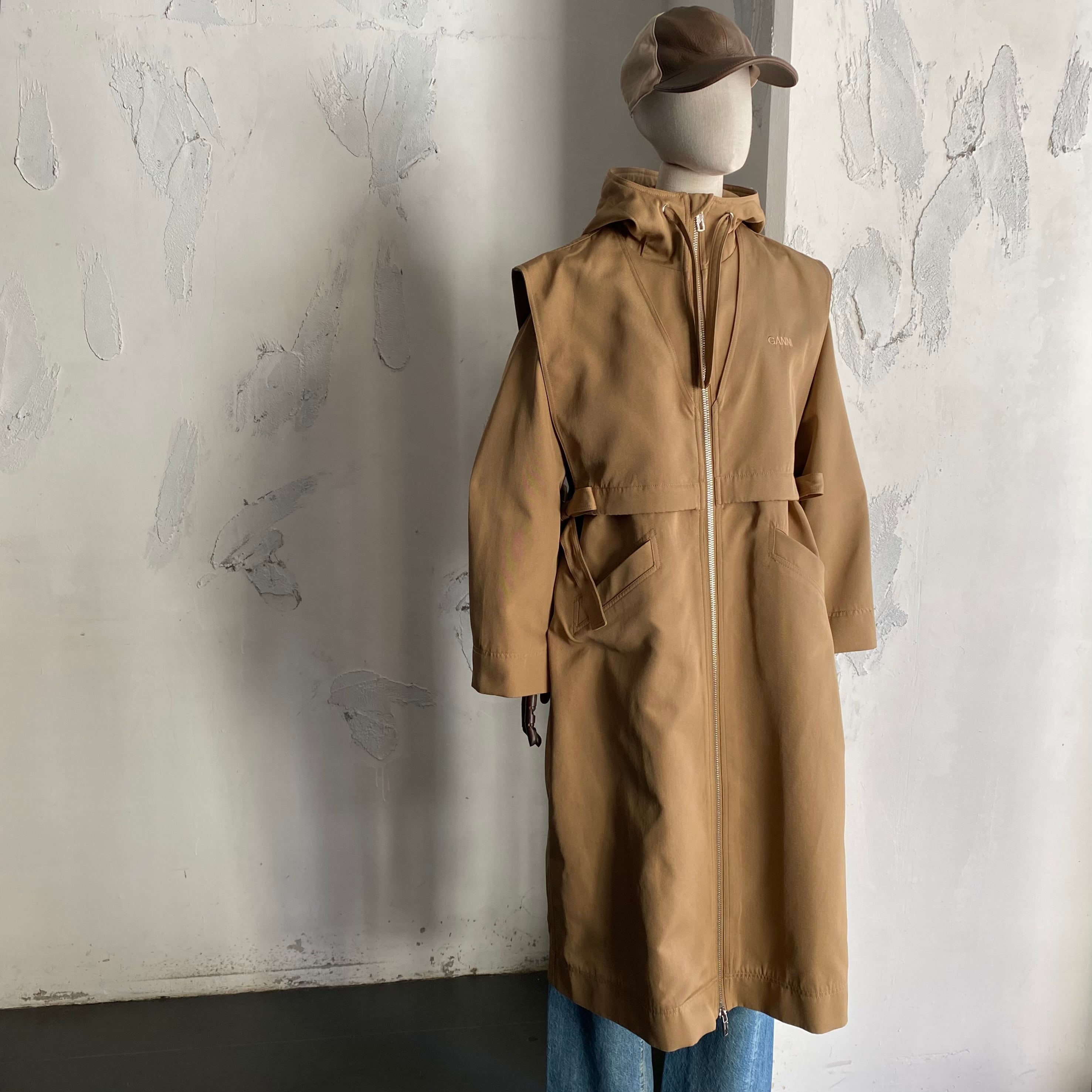 ジップアップのフーディがスポーティな印象で、ガニーらしいキュートでスパイスの効いたコートです。