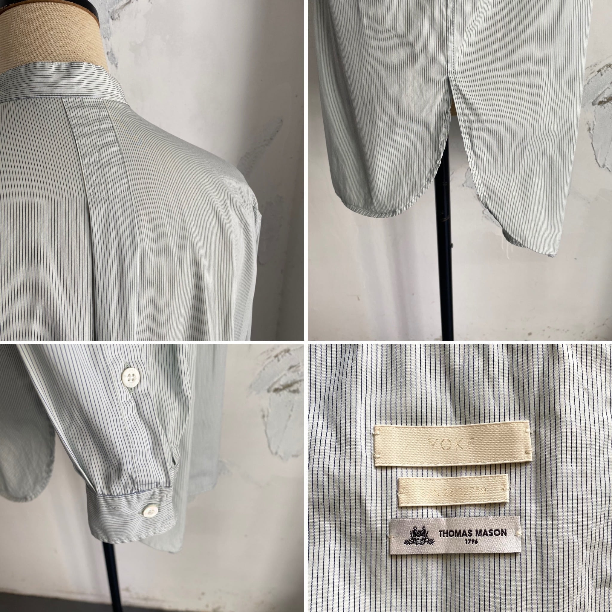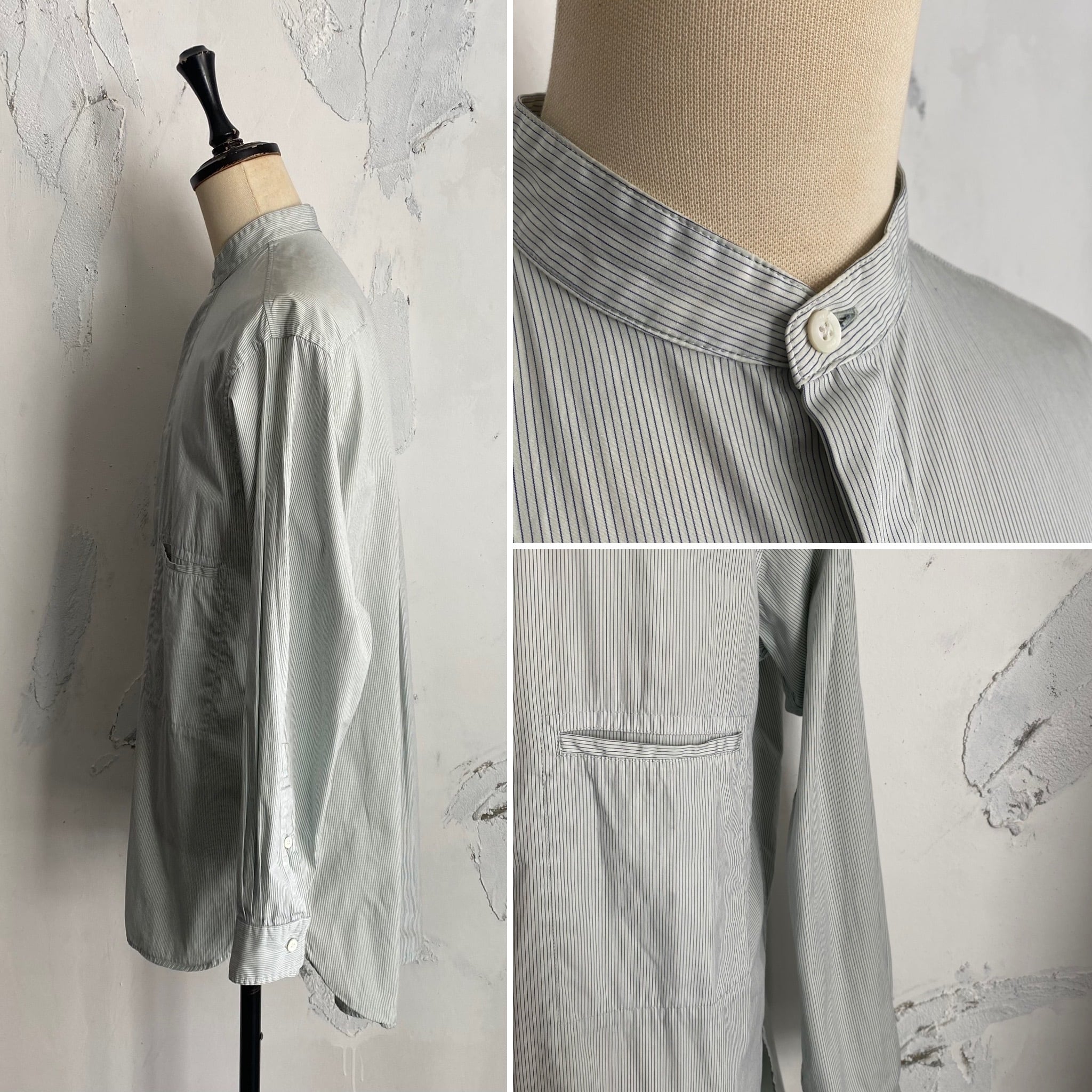 YOKE / pin stripe band collar shirts