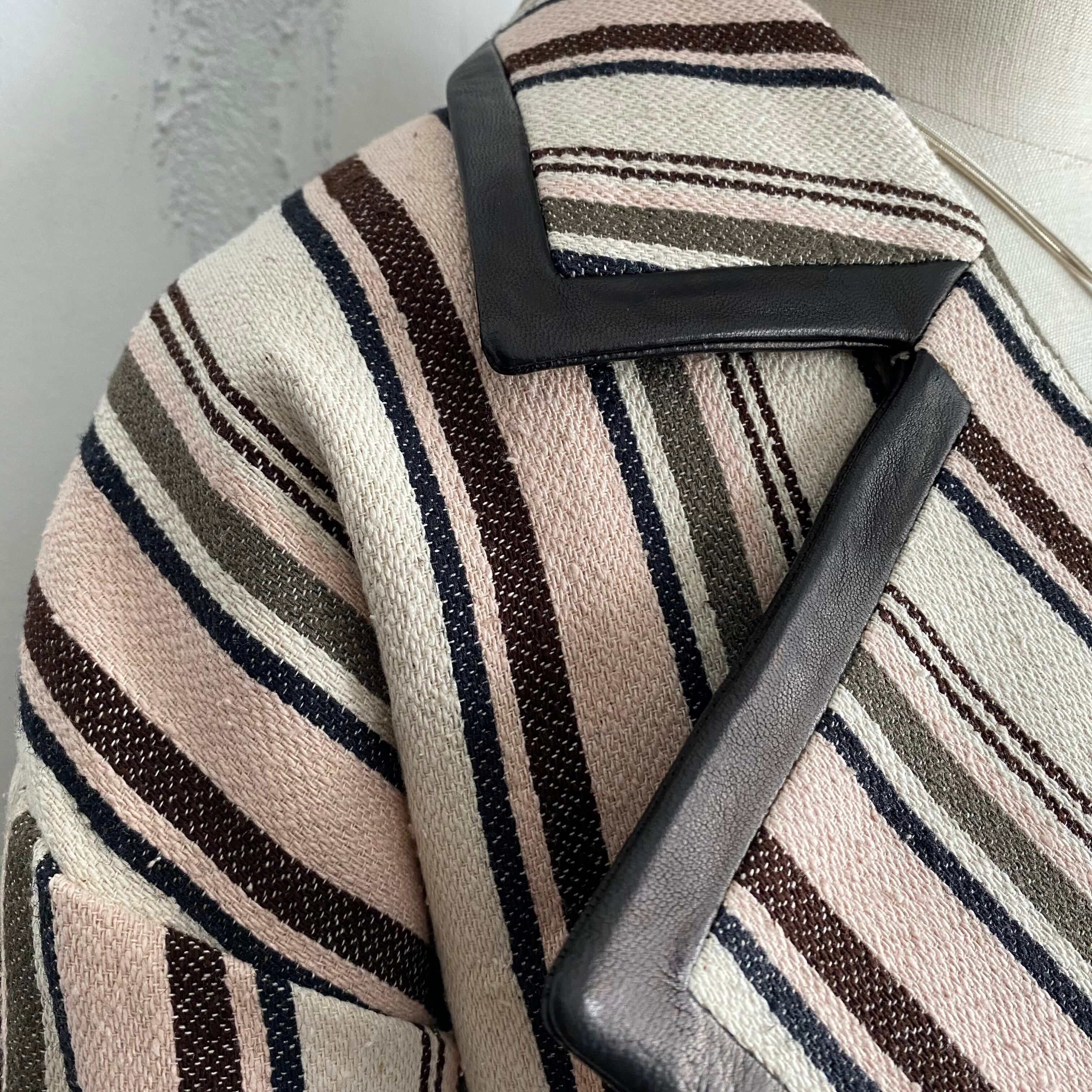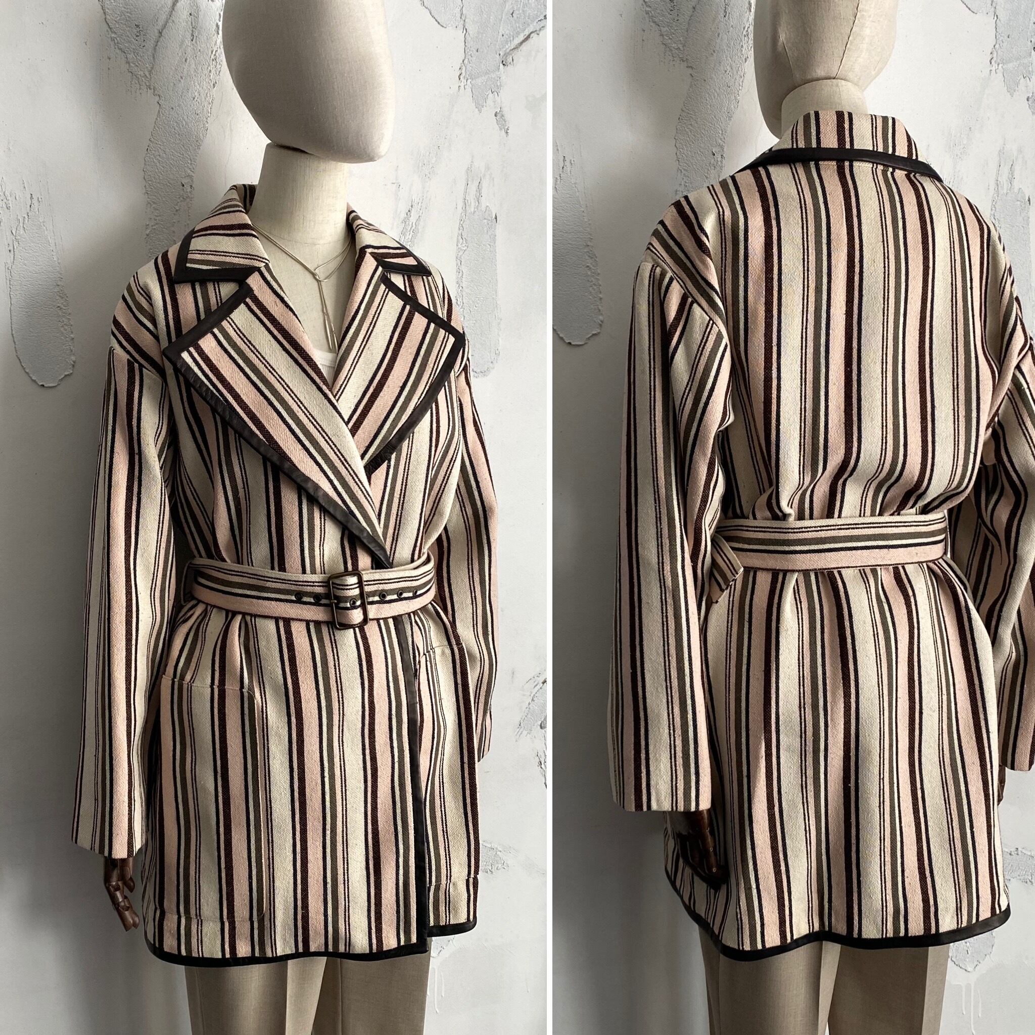 ラペルが大きく前留めが無いガウンタイプで全体的にカントリーな雰囲気。