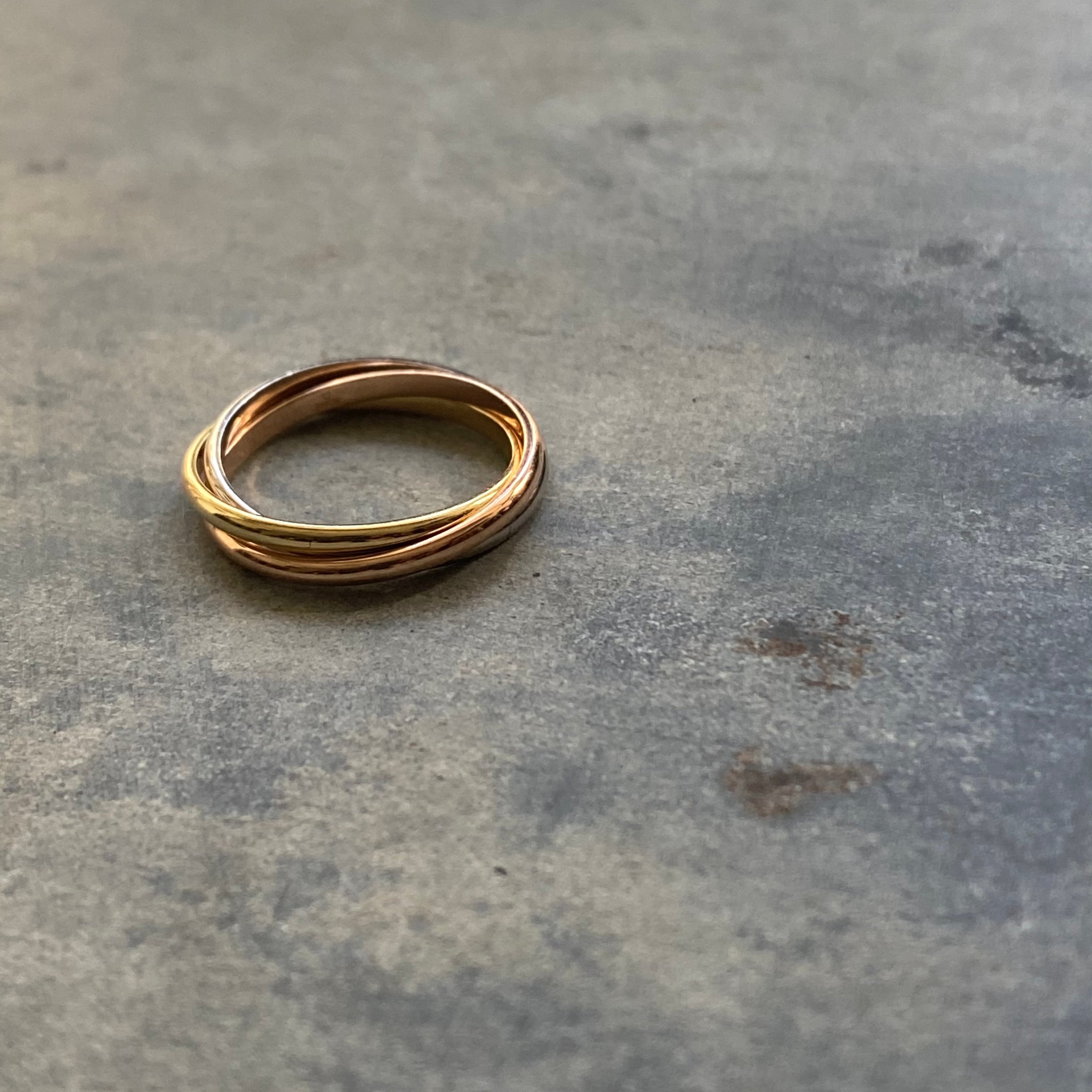 愛、忠誠、友情を示す3色のゴールドで世代やジェンダーを超えて魅了するリングです。