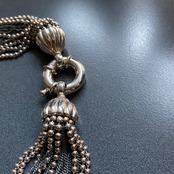 クラスプも重厚感があり、全体的にエレガントで煌びやかなデザインですが、シルバー特有のカジュアル感もある素晴らしいネックレスです。