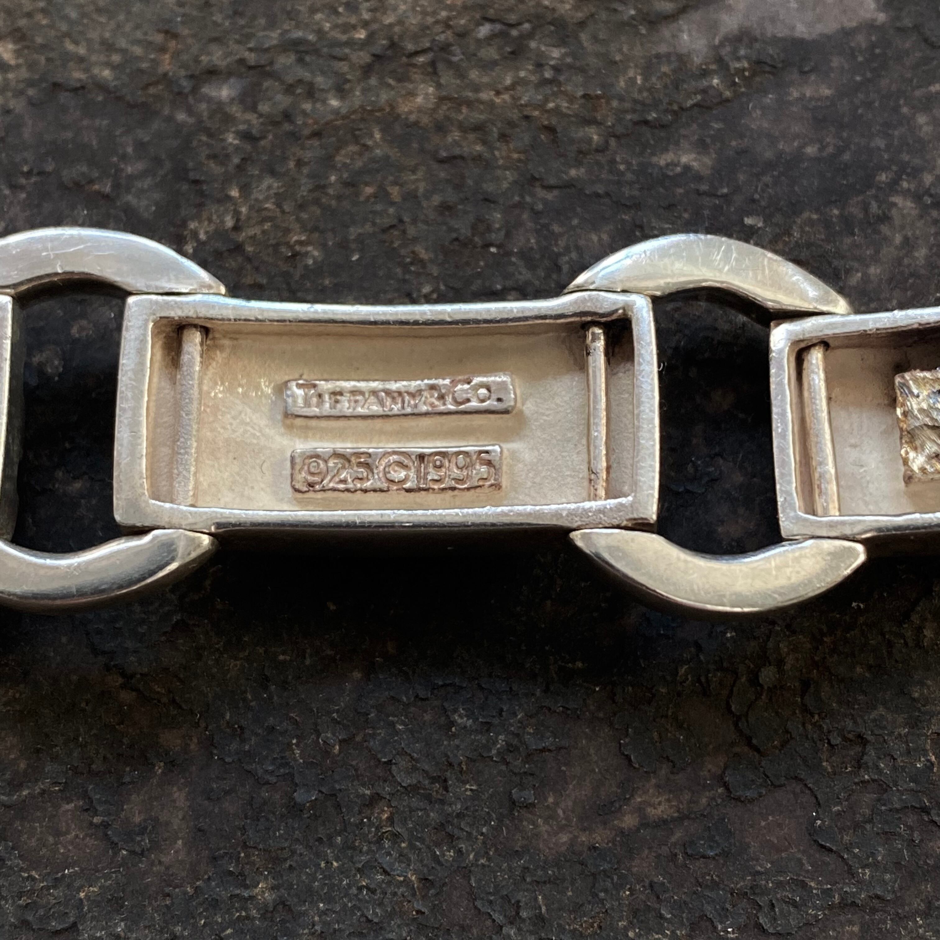 直線的な印象がありながら、湾曲したプレートと繋ぎのリングの曲線的な要素もあり、美しく洗練された逸品。