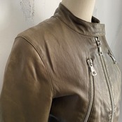 しなやかなラムレザーを使いシャープなシルエットが美しく、味わい深いオリーブカラーも魅力です。