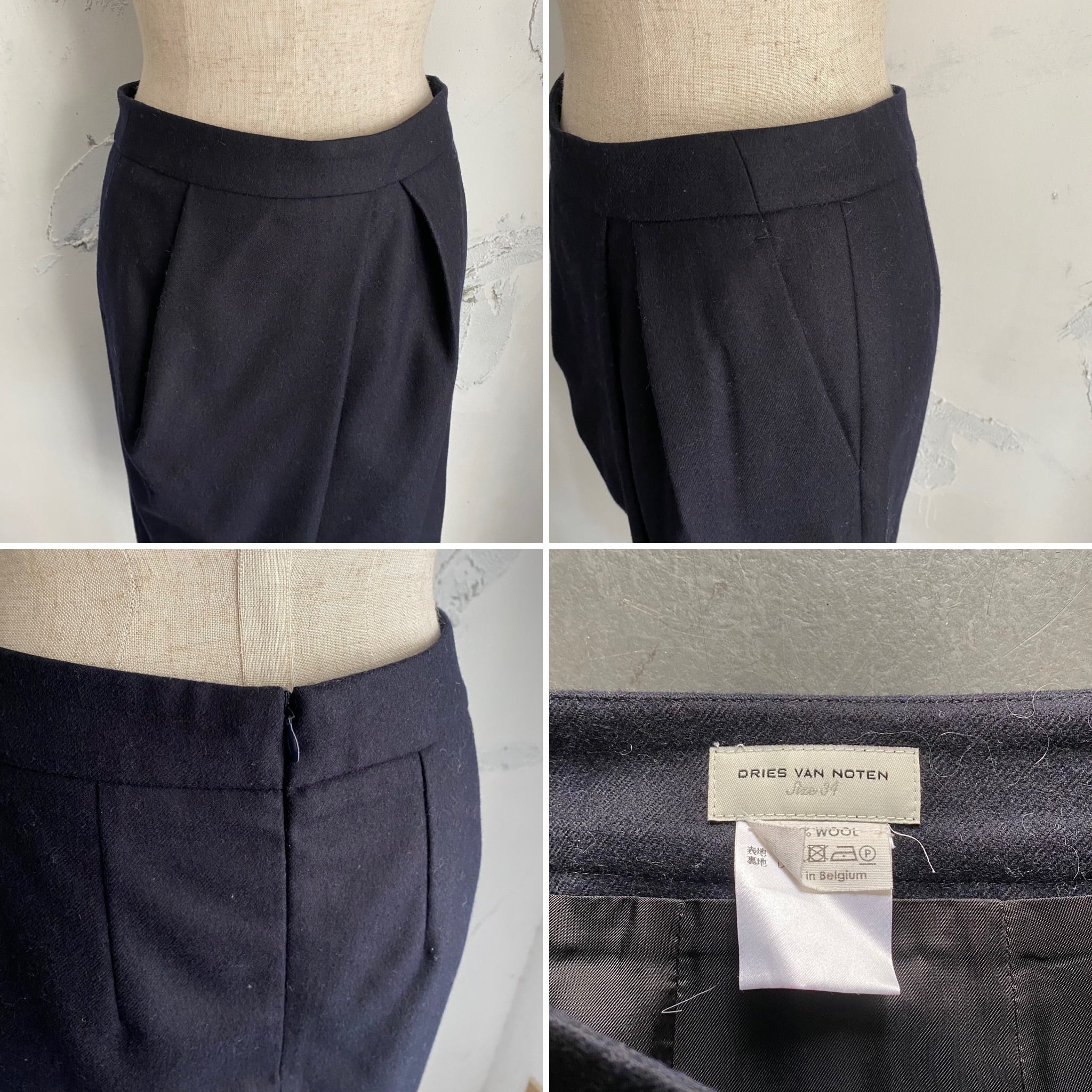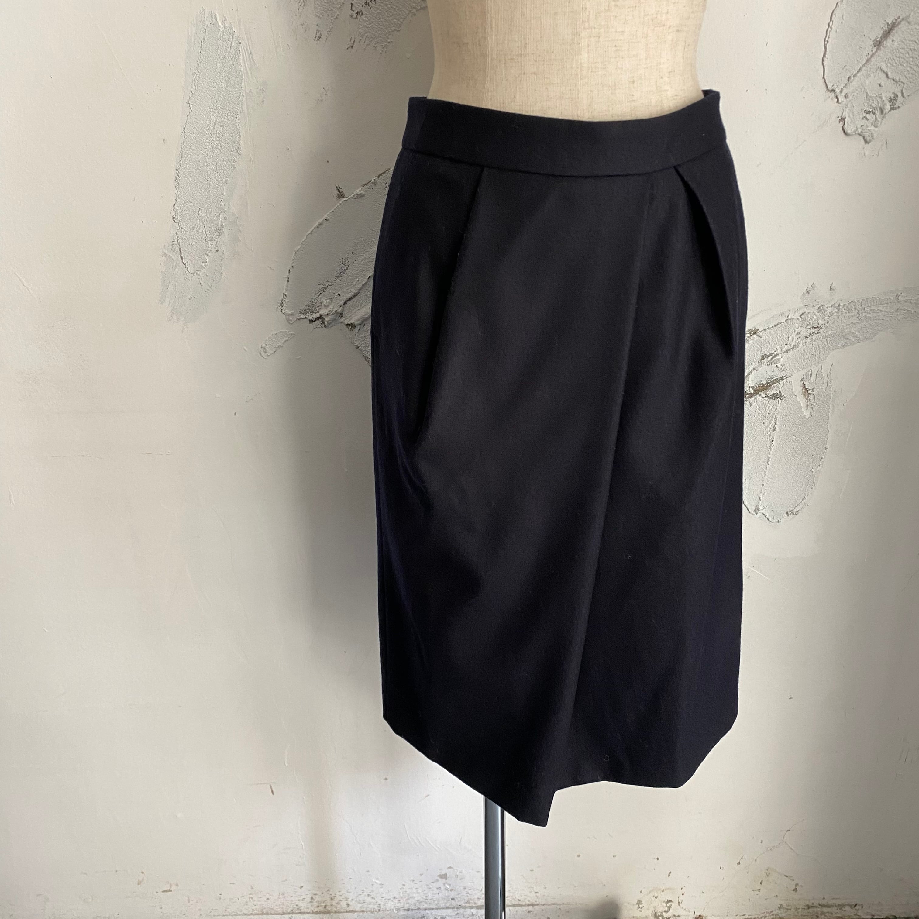 DRIES VAN NOTEN / navy wool flano skirt