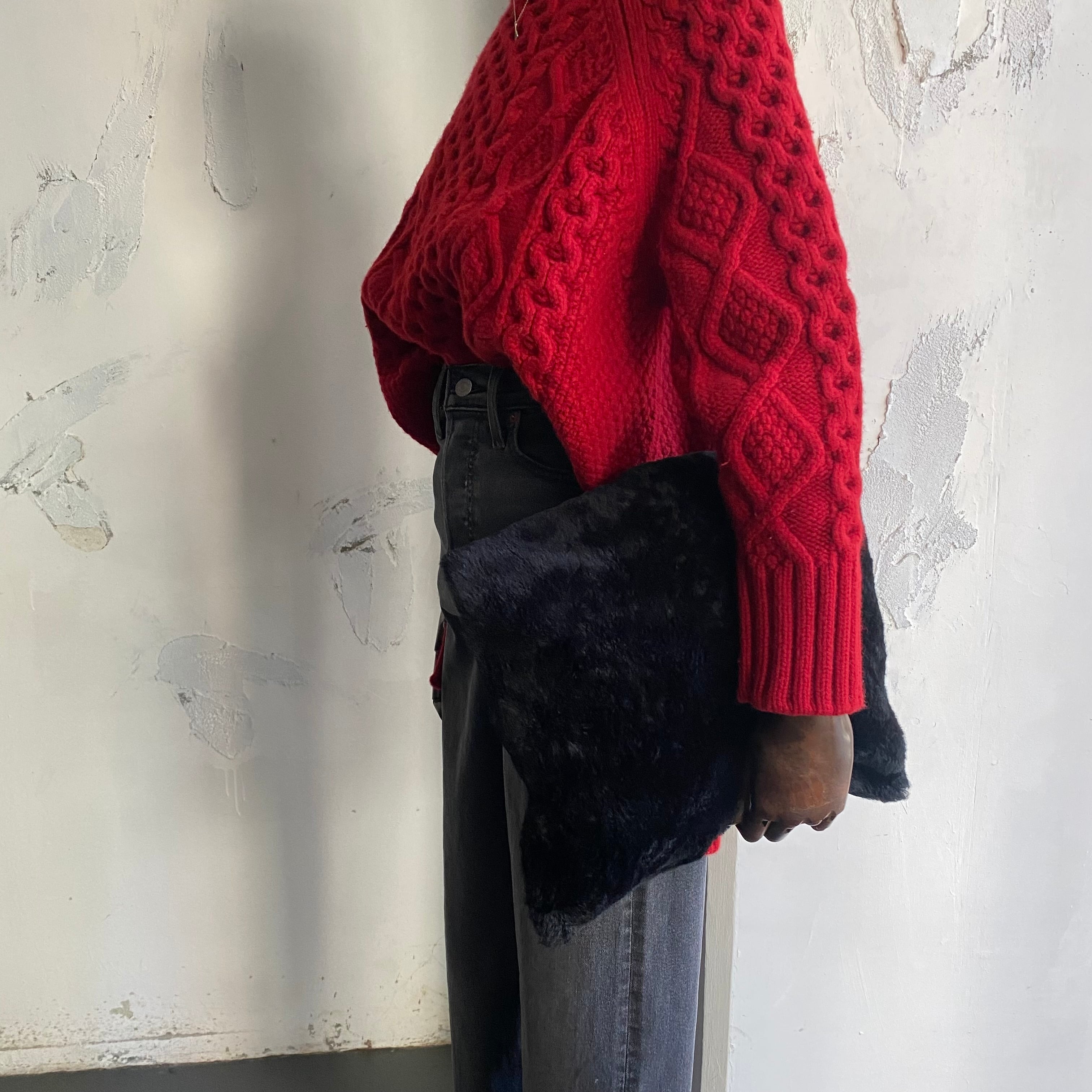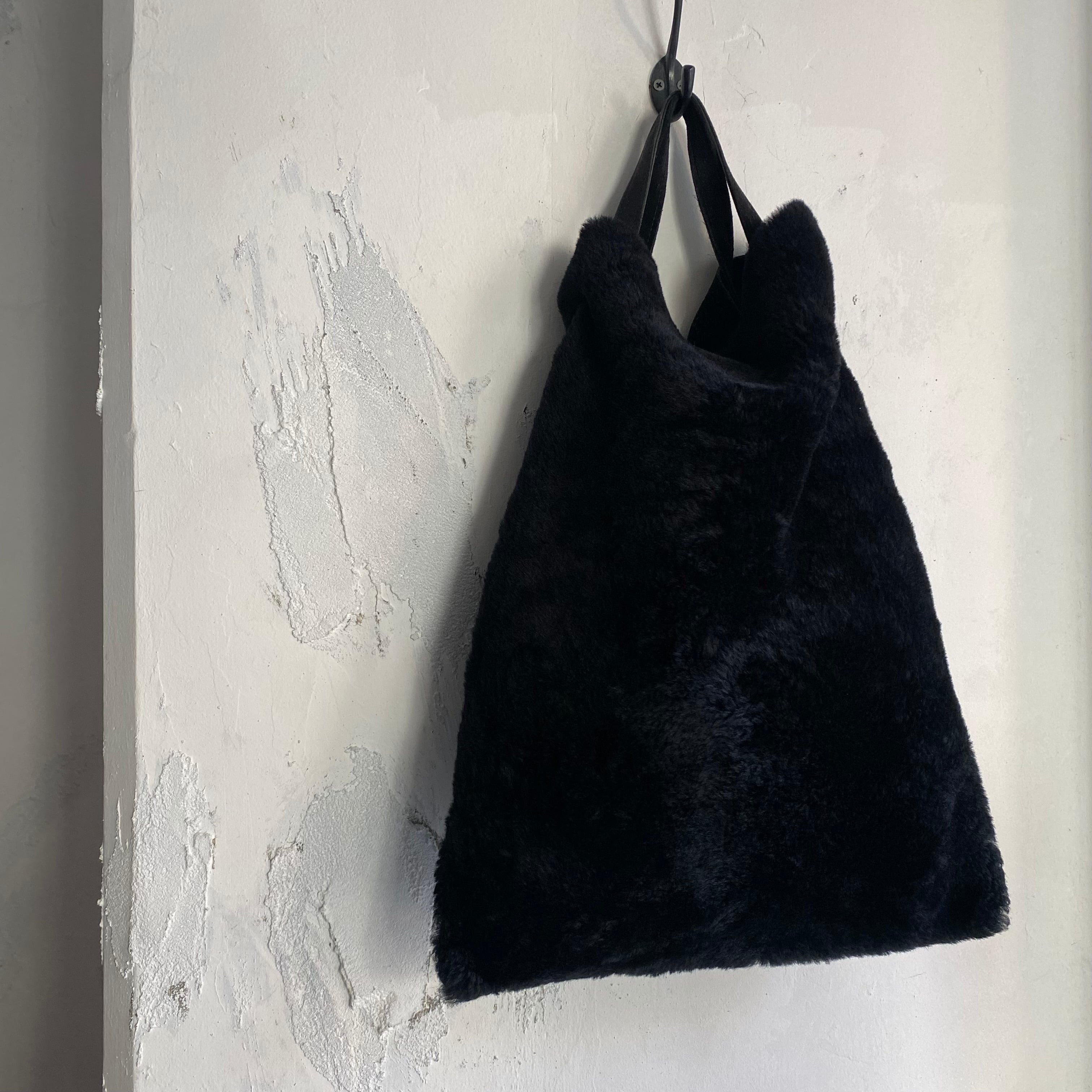 縦長のトートタイプ。毛足の長いムートンが温かみがあってキュートです。手持ちトートと、二つ折りでクラッチとしてもお使い頂けます。
